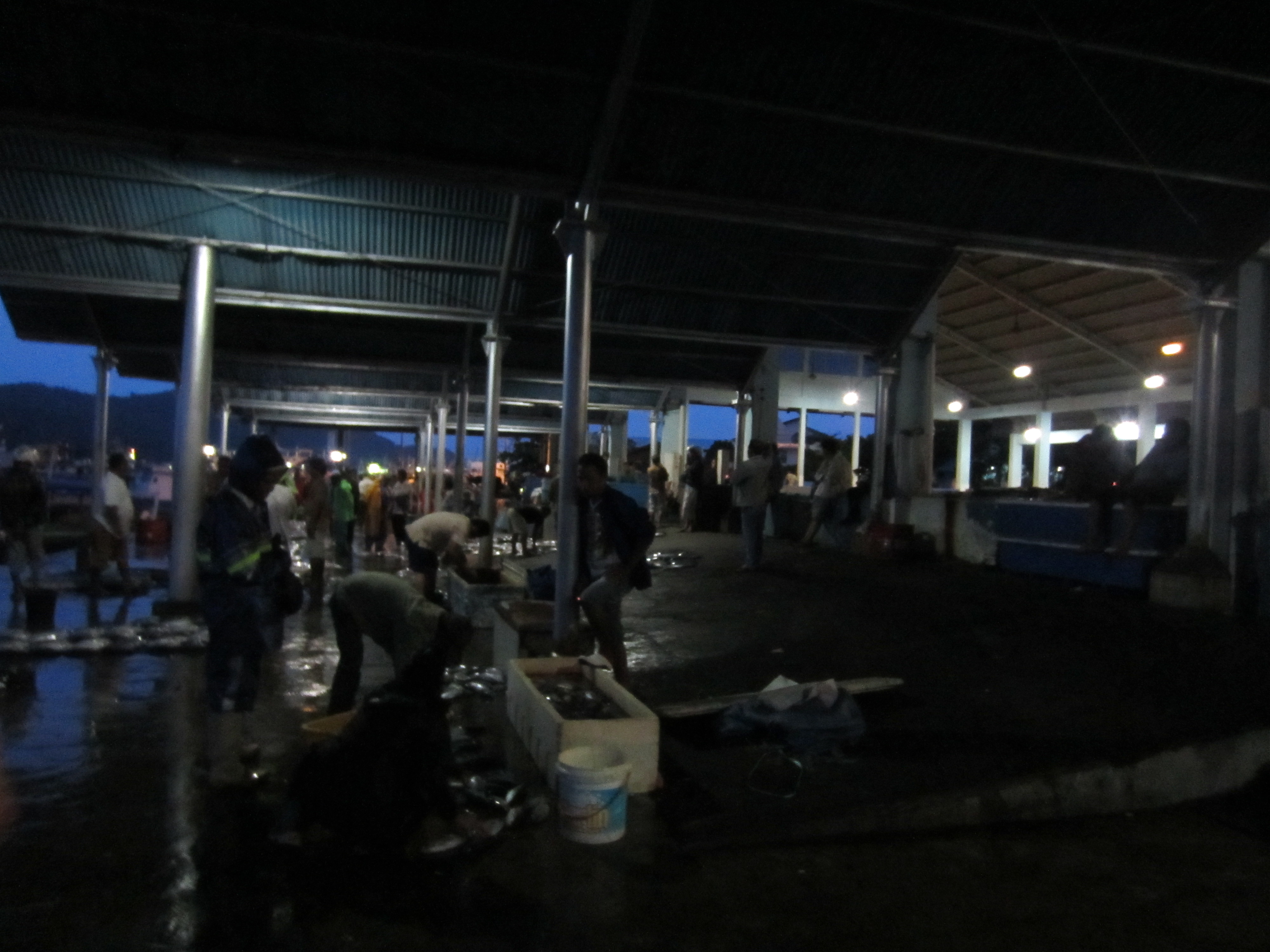 Upon arriving at the main landing/market on the harbor, we were informed that if we wanted “sotong bunga” (the Bitung term for “sotong bulat”) we would have to wait until at least 6:30 or 7:00 am before those particular fishermen got in. So after a nap in the car, we trouped off to two smaller traditional markets and left with 42 specimens (albeit with a significant amount of haggling!).