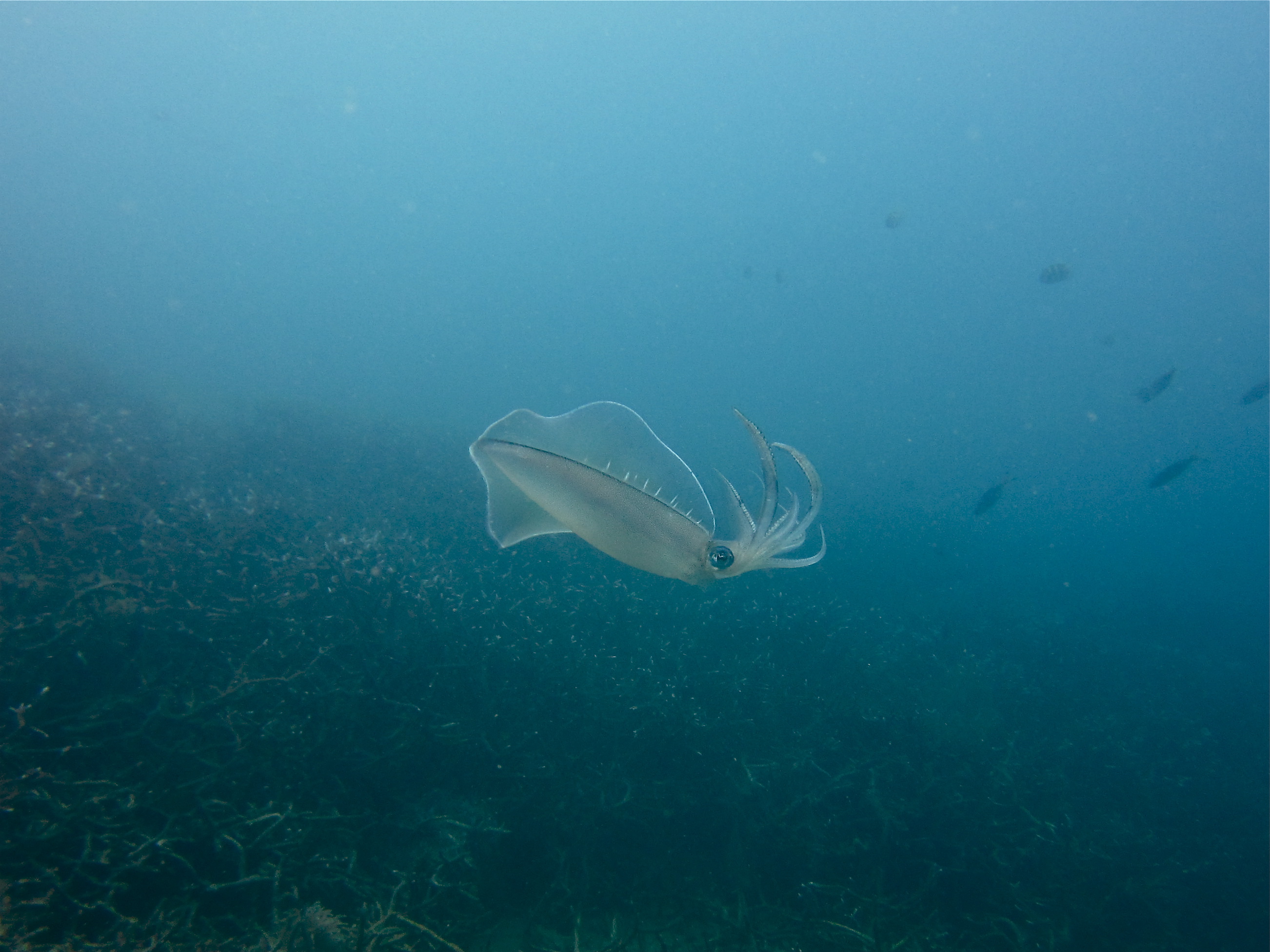 After hunting for some more eggs laid in different habitats in the afternoon on SCUBA, I finished the last squid dissection just in time for a drink and dinner! All in all, it’s been a squidful day.